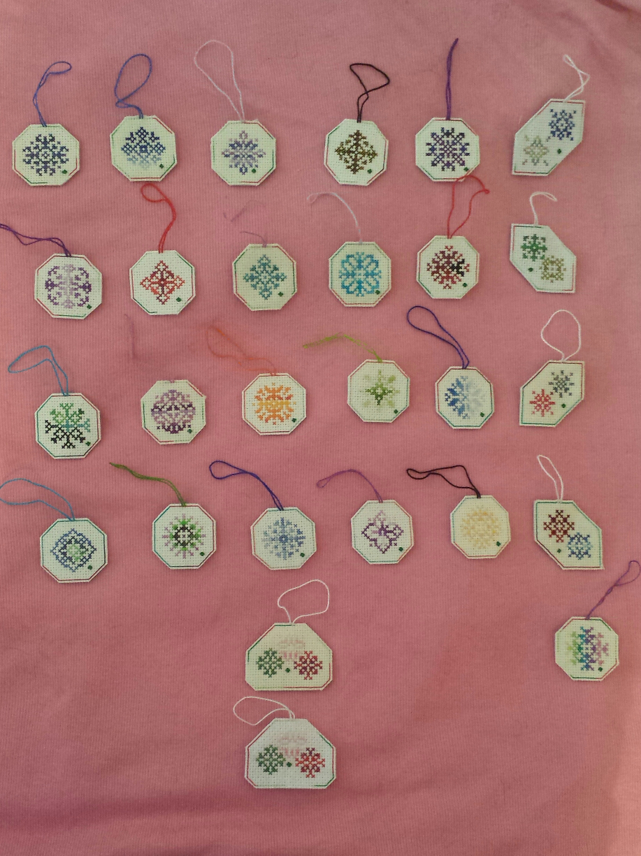These are the little ornaments I did for my holiday cards for 2015. I chose snowflakes for a theme to keep it easy, yet made each one different. I'm having trouble picking a theme, so I don't think I'm sending cards this year.