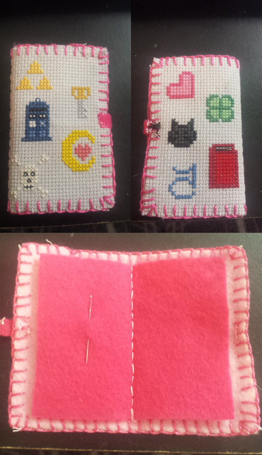 This is a little needle book I made because I kept losing my needles! Now, I lose them less. All the symbols are something that I either really like or something I feel represents me.