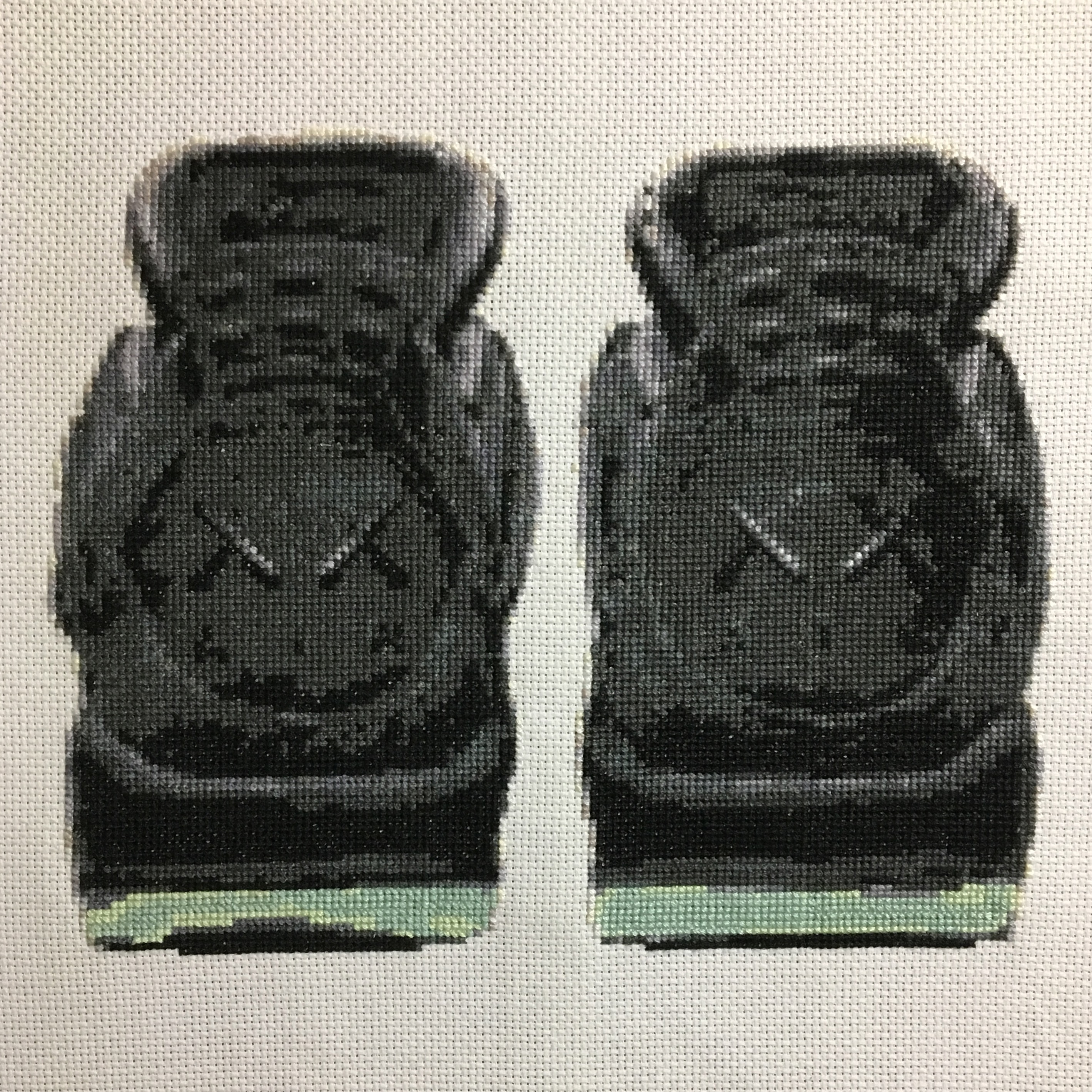 Just finished my stitch of the KAWS x Jordan 4 sneaker. KAWS and Jordan are both incredible brands. I love shoes, and this is one of the coolest pairs I own, so I had to do it.