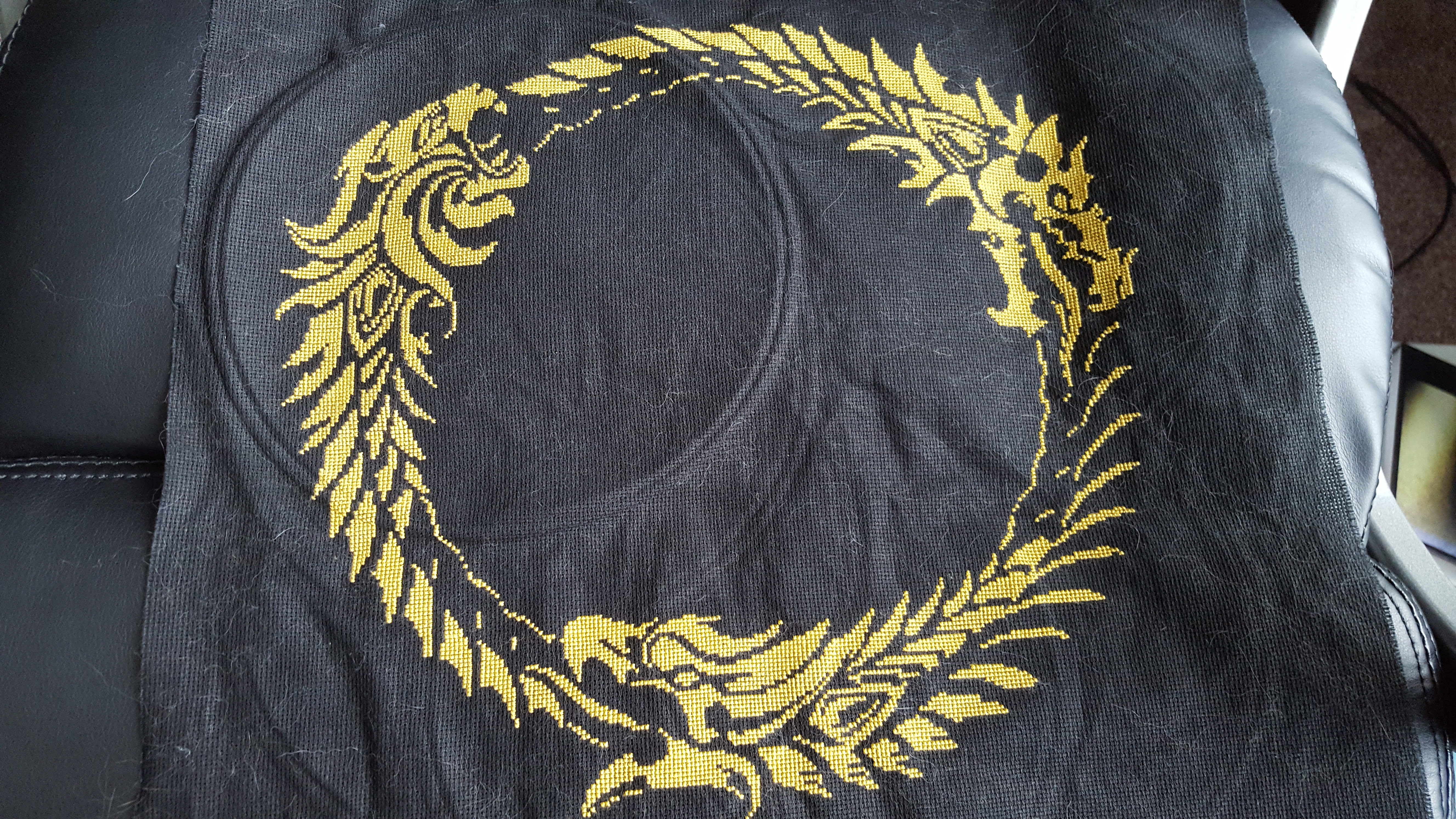 It is done! The ouroboros is complete! Getting through the fur tufts was slow, but the lion face went really fast, especially when I realized I was on the last page to finish.