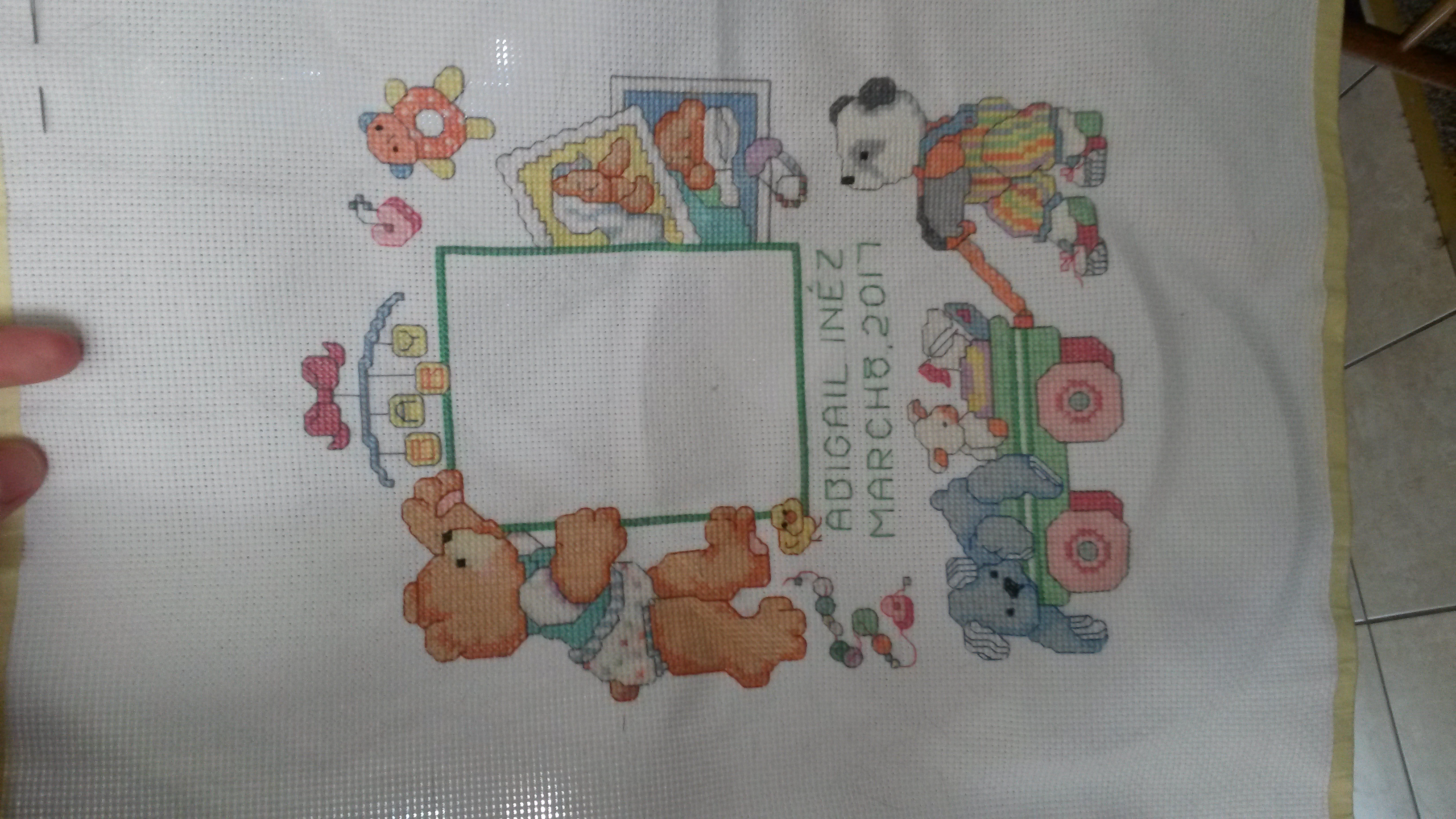 I am struggling with figuring out how to add a printed picture into this cross stitch. I don't really want to cut the fabric because I am worried I will do it wrong or that the stitches will fall out. Any advice would be great, as I have been putting this off for about 7 months haha.
