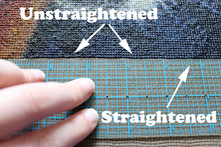 If your project doesn't exactly have a straight line, you can use the fabric's own blocks/threads as a guideline to pull it straight. The straighter you get it NOW, the better it will turn out.