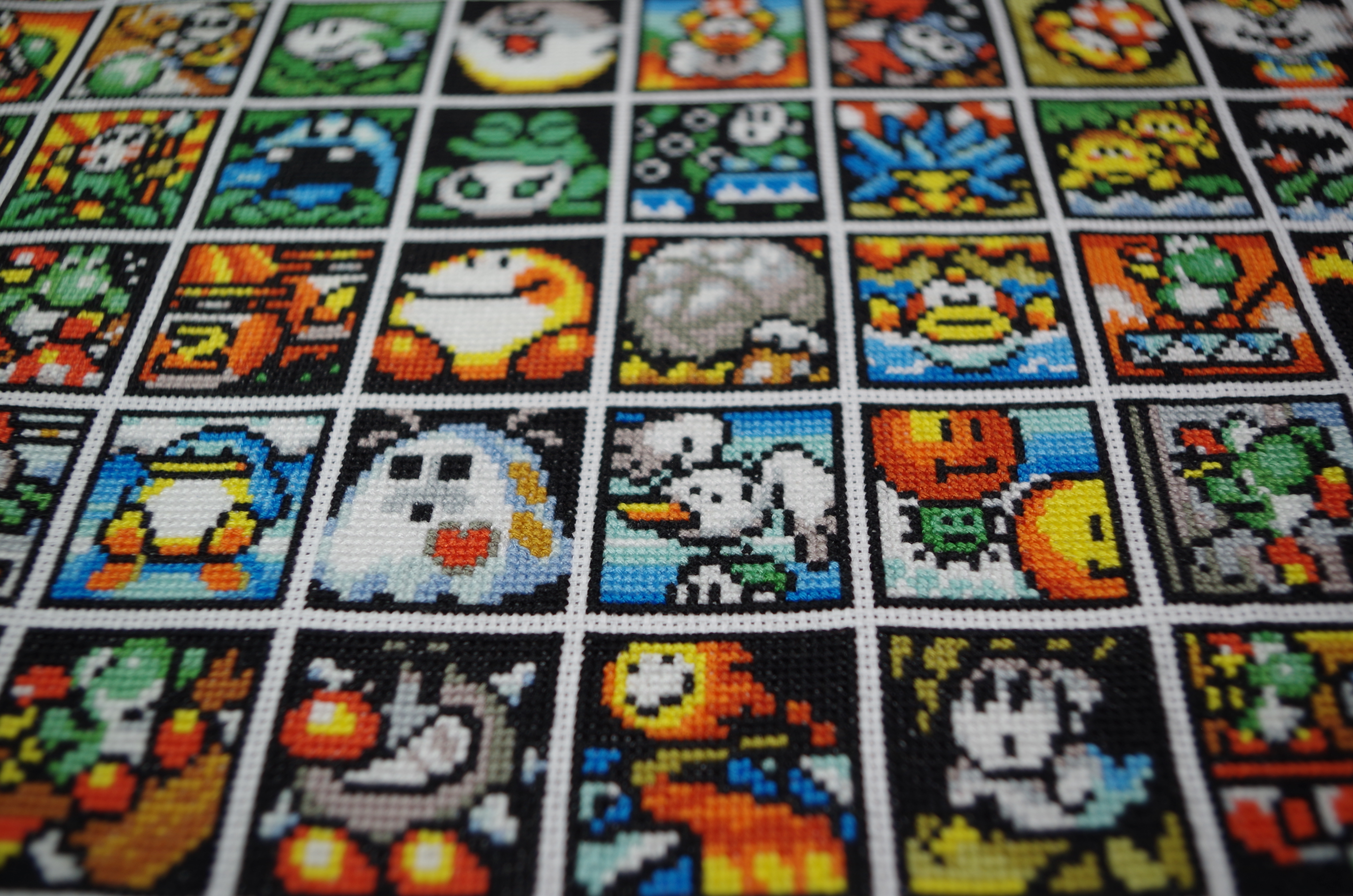 8 months and 27,648 stitches later, it's complete. The MacStitch software proved invaluable, as did the level tile spritesheet provided by Bacon at http://www.spriters-resource.com.