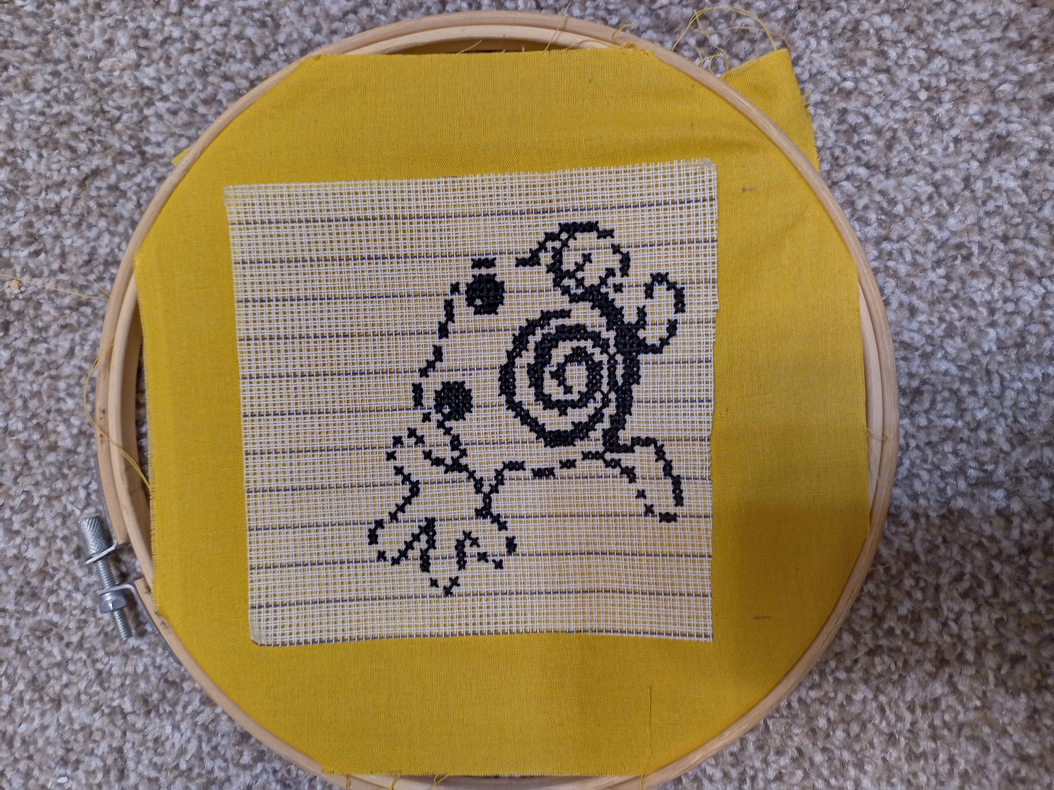 But here is the first square I did for basically a proof of concept, since I'd never used the waste canvas before, as well as the start of square 2/150
