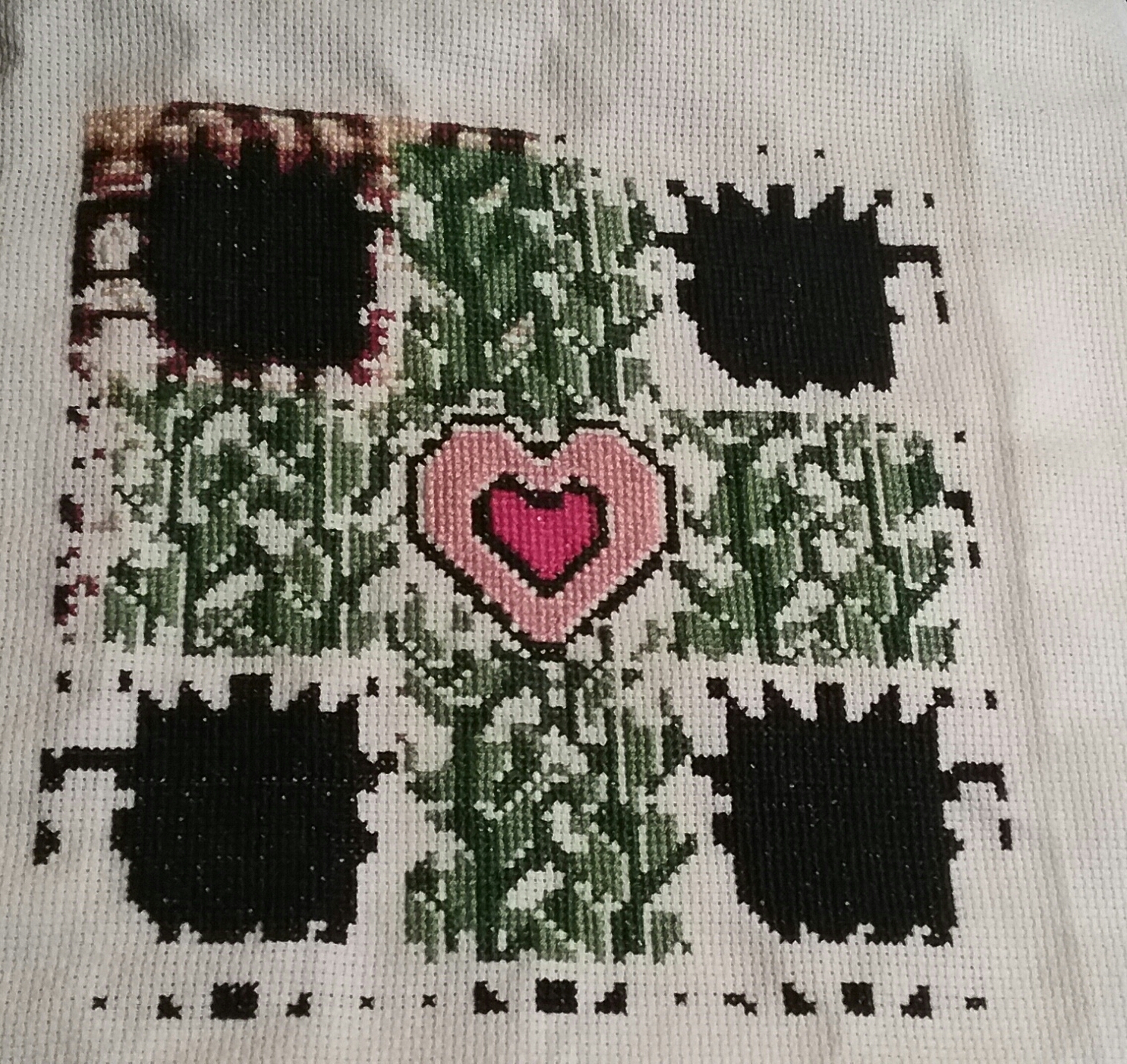 It's starting to look even scarier...I've started adding more black around the square! I, too, have lost a lot of hearts while trying to make those jumps!