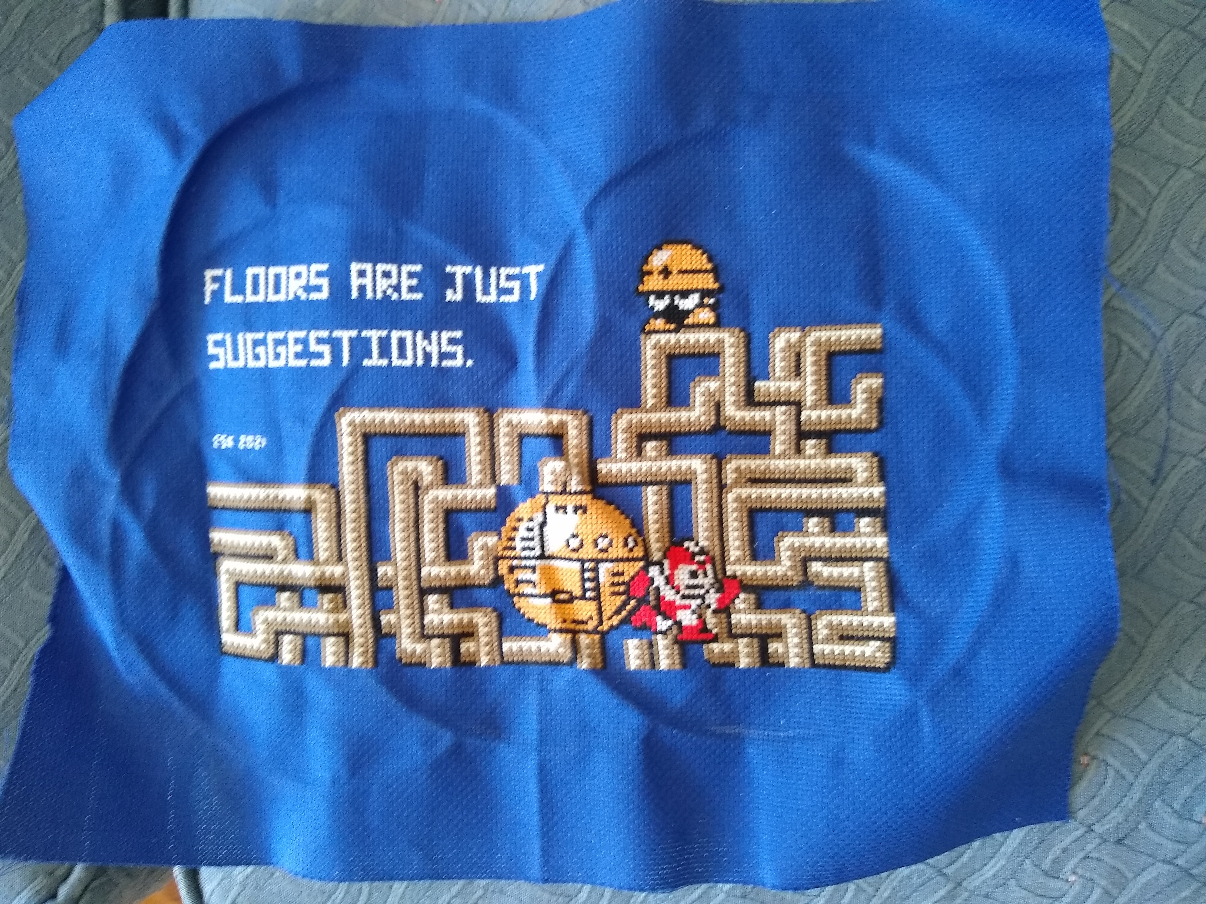 Meantime, you'll note the other attachment and are prolly saying "hey, that looks familiar". As well it should, as the design for a picture I stitched for SGDQ 2019. Got word from Games Done Quick a couple of days ago that unfortunately, the person who won it, never got it. Lost in the GDQ warehouse, lost in the mail (they got it from me, was featured on camera and all, so I'm in the clear), who knows. But, they were asking if I was willing to redo it. Rather small picture (58 pixels/stitches by 39, as opposed to the 144x88 of the Mega Man 2 picture I just did), figure I can bust it out in a couple of weeks. Last time, Mom and I framed it. This time, we'll let The Artery take it (and I mentioned all this when dropping off today's project). So the prize winner will actually get a bit of an upgrade. I didn't make a note last time of the exact colors I used, but I should have all the same ones and can figure out what works and such (along those lines, see the list below for the colors used for Mega Man in case anyone else wishes to stitch this). So, we'll get that underway tomorrow. Prize winner has been very cool and understanding considering it's been a couple of years, but no need to make him waiting any longer than needed. And GDQ did say they'd reimburse me for this, so we're calling this my second commission (coincidentally, when I was dropping off today's project, the brother I stitched the Donkey Kong picture for last year as my first commission happened to stop by. He saw this project and correctly identified the game [impressive considering there were 6 NES Mega Man games and Mega Man/the graphics really didn't vary much between them]). So, personal project will be put on hold for a bit longer, but first of June or so, we should be able to get back to it.