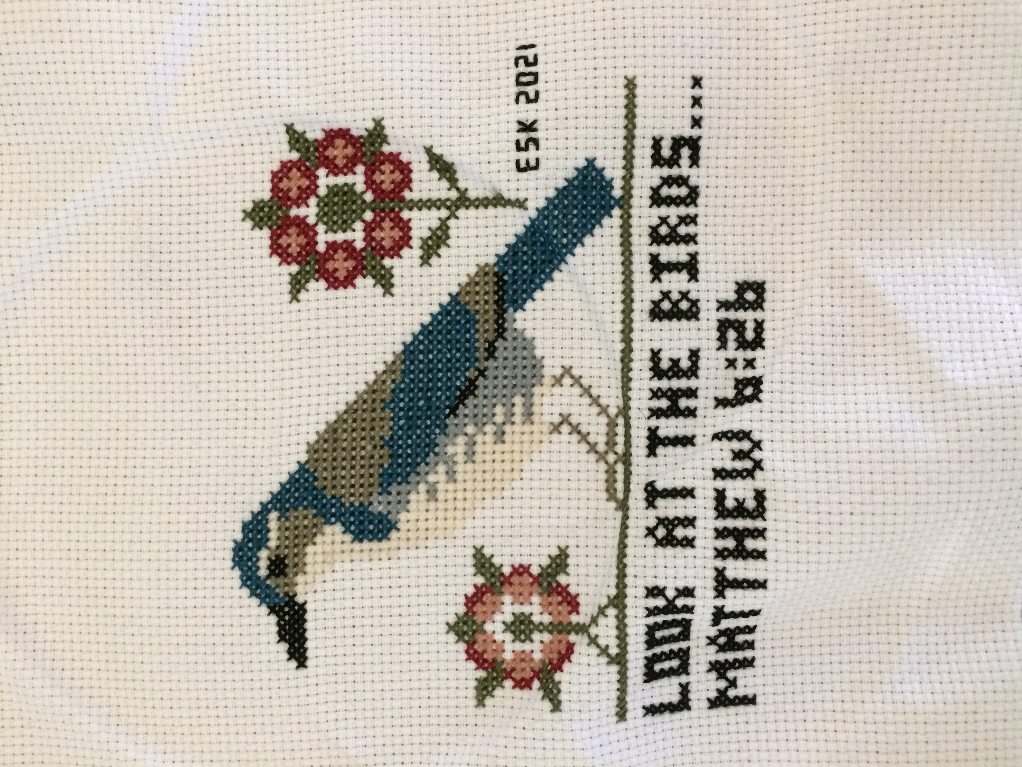 Before getting back to my project of stitching something for every Zelda game I've beaten, I busted out the attached picture for Mom's birthday. Isn't until the first of September, but wanted to get it done and into the framers to give them plenty of time and not be rushed (dropped it off yesterday). The idea of the few words from the verse I got from a local pastor who said his daughter did something similar. I added the bird so that it would be more of a picture rather than just a few words of text. Bird pattern was taken from https://www.etsy.com/listing/499307683/ ... _active_20 I wanted something that we have here in the area, that Mom might see as she was looking out the window. Hence choosing the scrub jay. My hope is to sneak over to her house one day once it's framed and hang it so that she'll just find it, but we'll see how that shakes out. Next up for our Zelda project, though, is Twilight Princess and I'm looking forward to this one. Think it'll be a bit more challenging than some of my other projects, but I think I'm up to it.