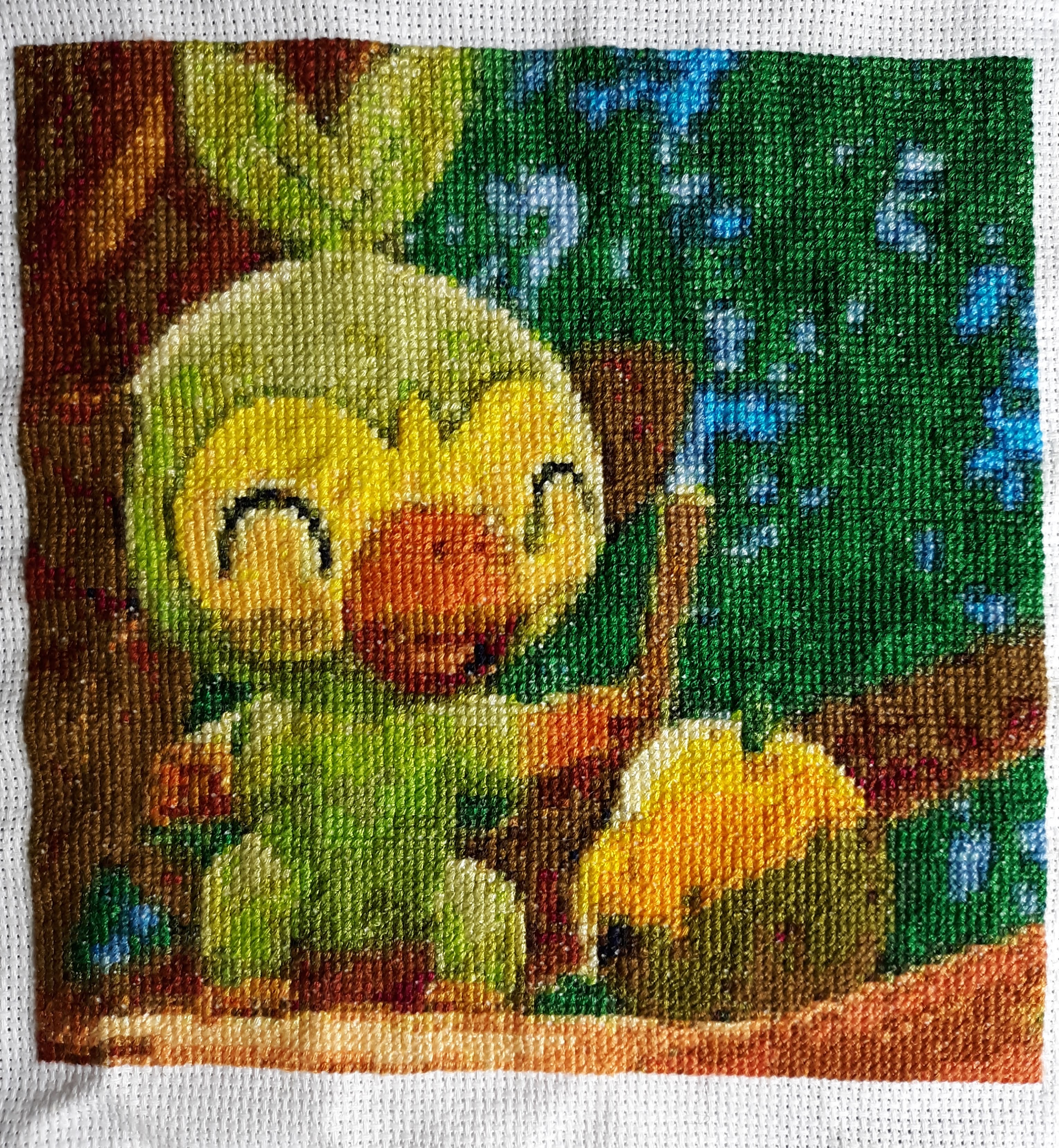 And I may have charted another block so I have a break between Lily (88 colors) and Grookey (70someodd)...this one has 8! Presenting Hamtaro: Ham-Hams Unite!