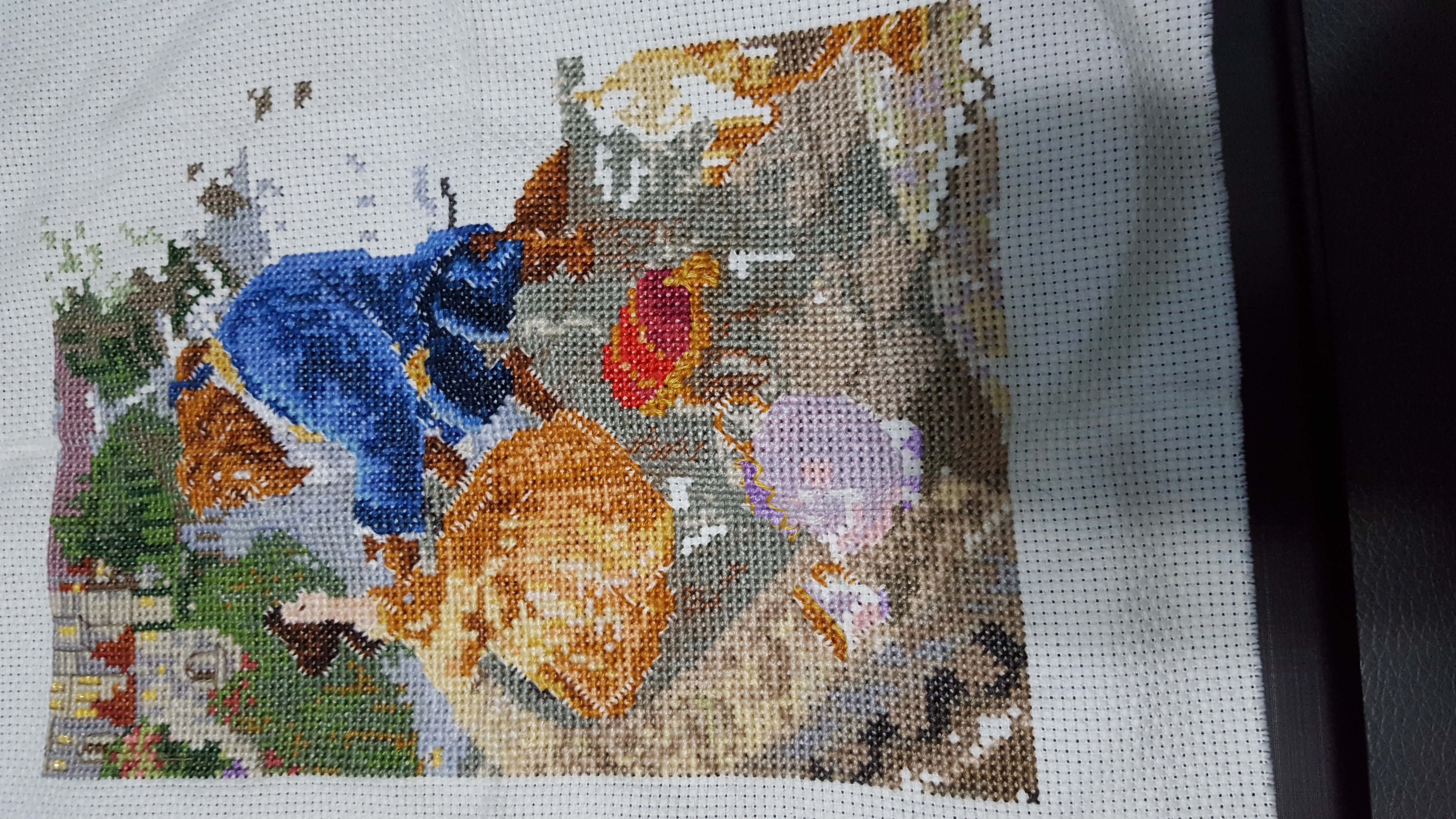 Hi everyone! I finally finished the cross stitches on beauty and the beast!
