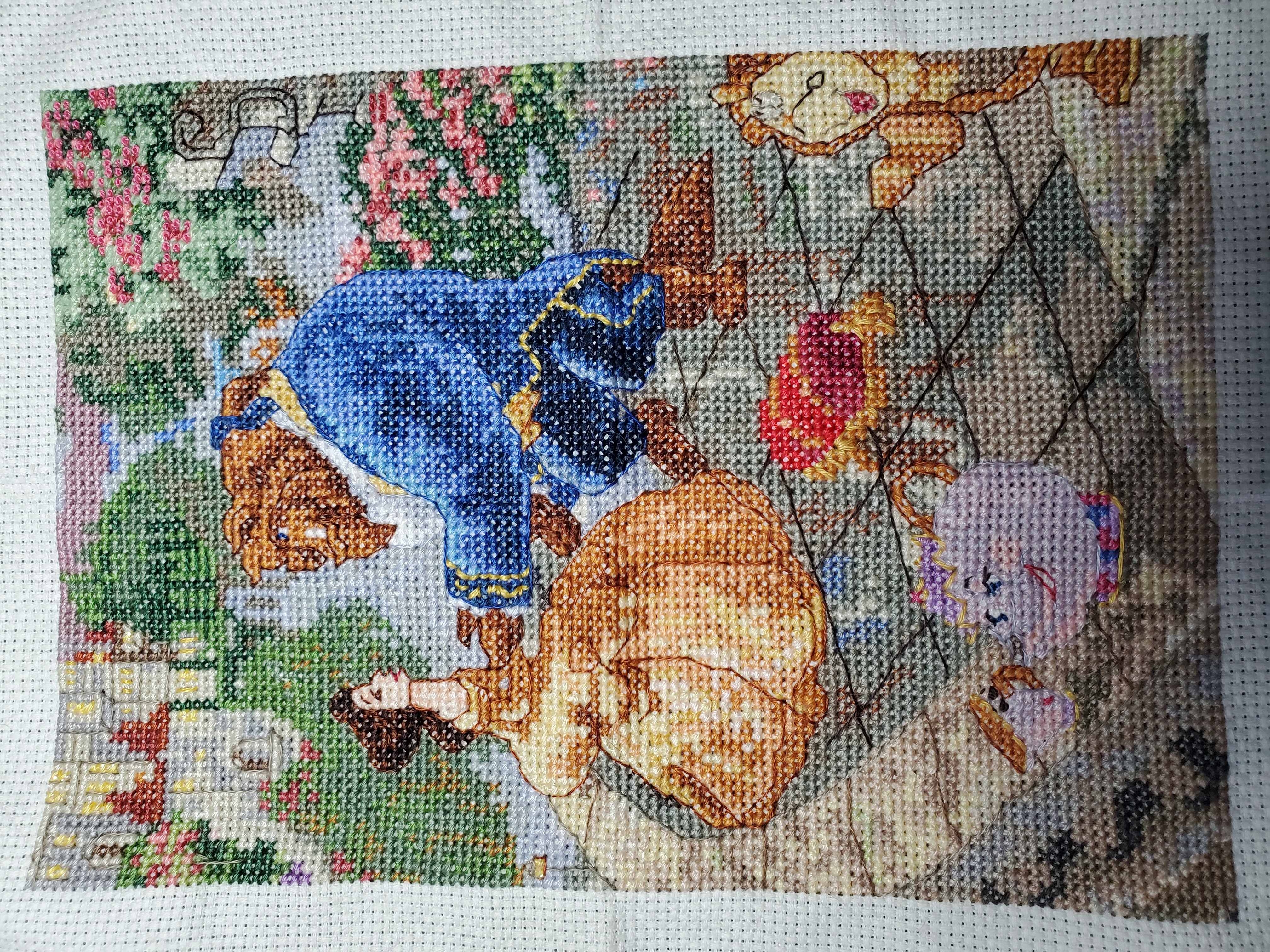 Congrats on the finish and great work powering through those french knots.FireKraken wrote:Hi everyone! I finally finished the cross stitches on beauty and the beast!Lots of little details and thread today. Now to work on the backstitching and French knots.... so many French knots. Can't wait to share when it's all done.Spoiler