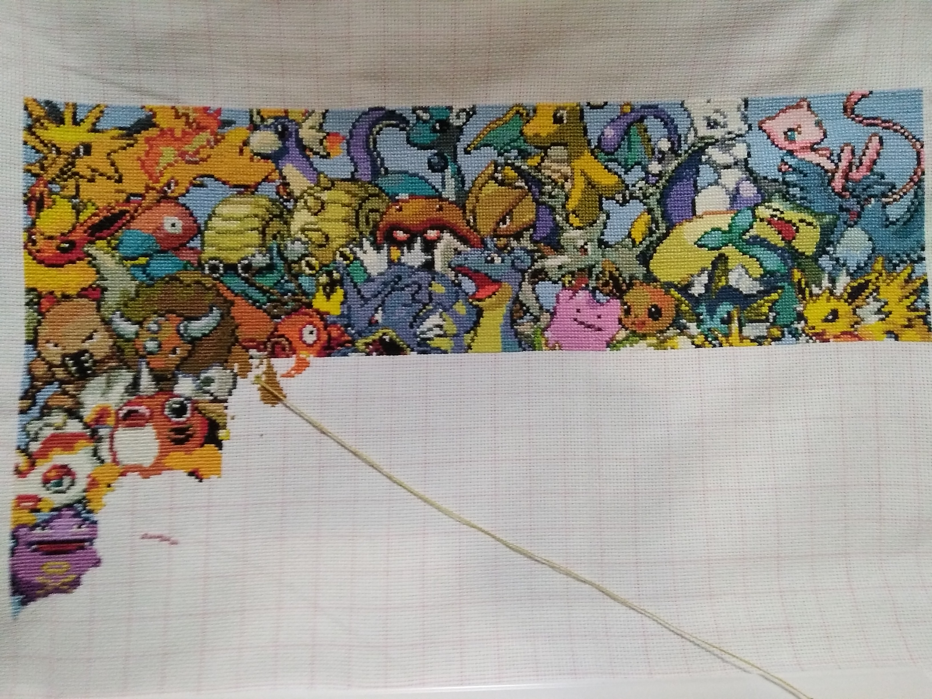 Hi! I want to show you what I´ve done during about 3 months. I decided to change a few color numbers (Mew, Aerodactyl...) and I´m waiting for more supplies for Voltorb, Weezing... because the ones I got (CXC, are great but sometimes the colors look different) are not accurate enough to the original sprite. I´m enjoying myself a lot, everytime I complete a page or a Pokémon feels great