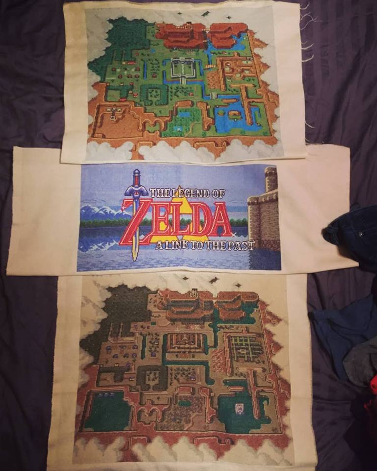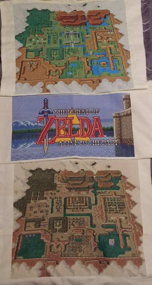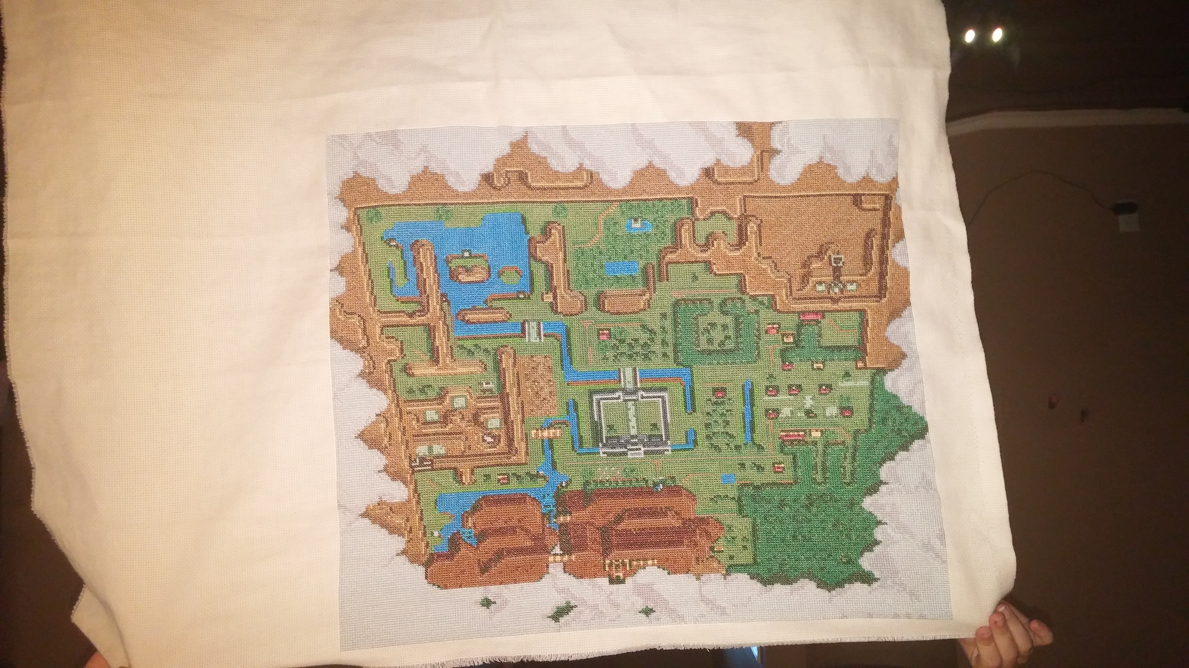 This has taken me about 2.5 years to complete. the first one finished was the light world; took about 3 months. then I went back to school, and only had random bouts of time to work on it. I completely the dark world and the title screen days apart. I can't wait to get this thing framed. I appreciate all the people on this board willing to post patterns for things like this.
