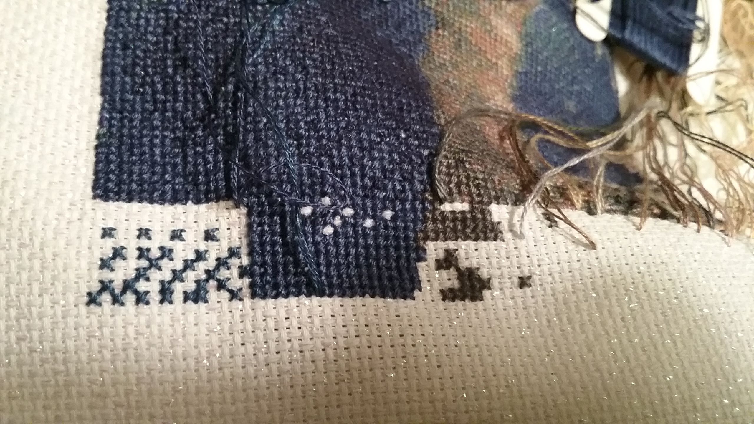 With a project this size, restarting after 2 pages really doesn't seem like that much of a loss! Someone on the THBS group on Facebook even restarted after 8 pages! (similar problem to mine...same stitches, but they weren't using Kreinik).