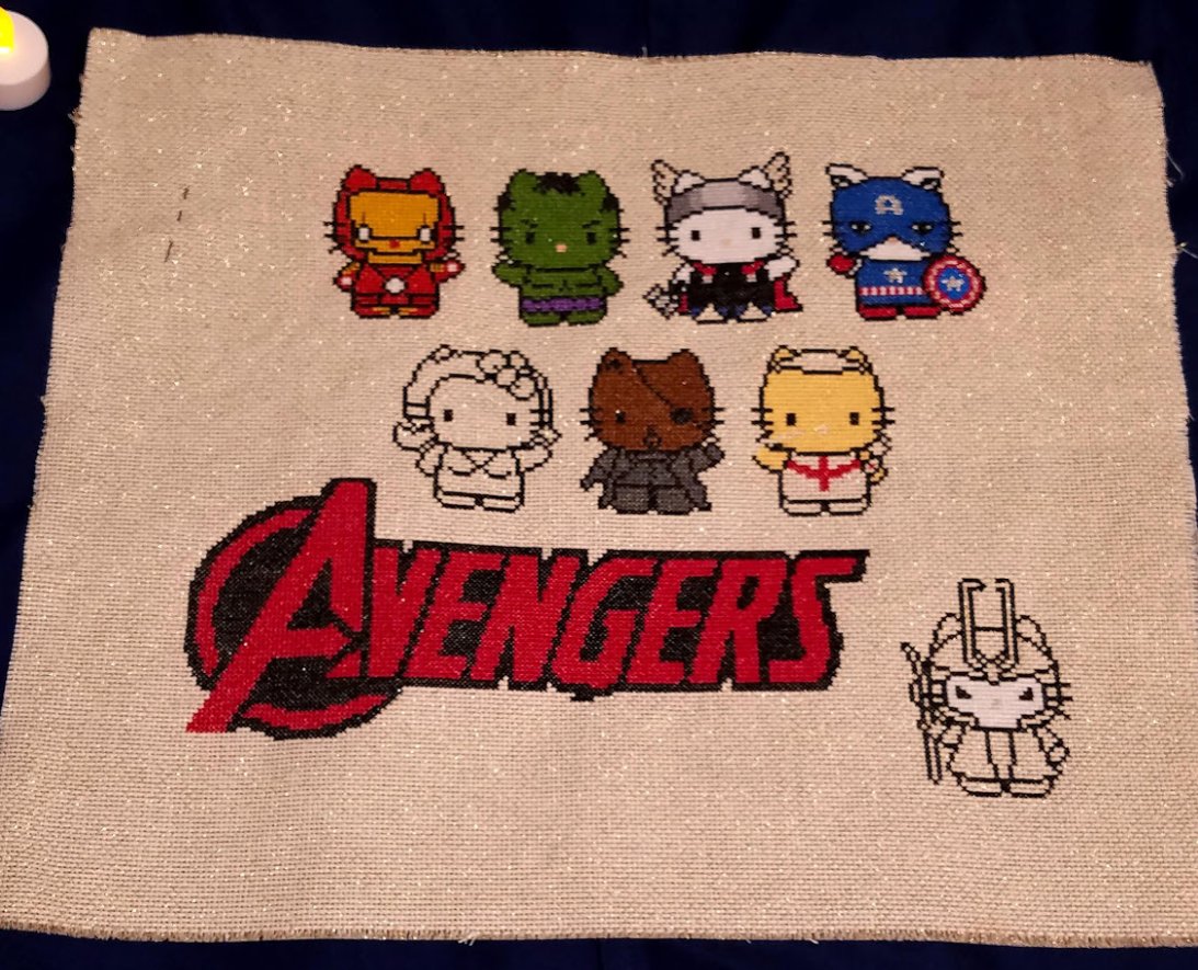 Visit Mordor - Complete ~22.5k stitches [Night Sky] Slytherin Crest - Complete ~9.1k stitches Night Flight - Complete A silly piece I cobbled together one night - reference to Disney's Mulan and gave me a chance to do this tiny cute cow and an update on my Hello Kitty Avengers piece - WIP