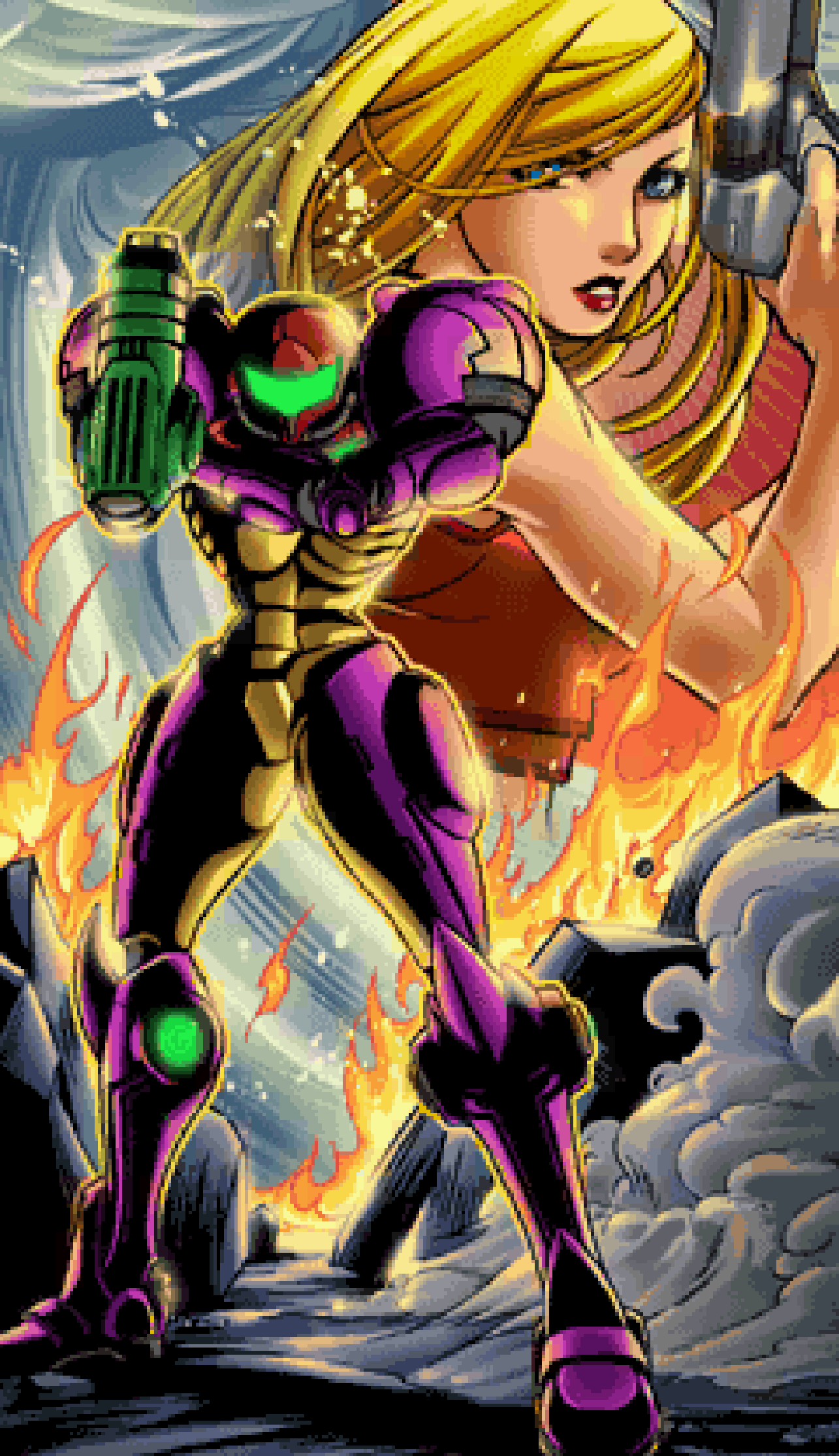 I'm wondering if anyone would like to take on creating a pattern for my favorite end screen from Metrid Zero Mission for the GBA? I've never made a proper pattern before, so I wouldn't dare. I usually stitch on 18 cnt, but I could go 20. I tried smaller than that once, but had to give up as it took me about an hour to put five stitches in, so I'd rather it looked a bit blocky. I don't know to well about sizes. The GBA screen was 240 pixels across, so as far as I gather the pixel dimentions of this image would be 240w416h (unless I misscalculated), but I can also understrand that a pixel by pixel stitch might not look the best up close? LIke I said I've never made a proper pattern before, but if 240x416 would work, by all means go for it. The largest project I've done was 240x300, and I've made several projects around 250x250, so I'm not perterbed by the size. As for colors I've worked with up to 100 colors before, and that probably my limit, on that project I had some trouble keeping everything organized and there were a lot fo colors only used for one or two stitches, which seemed a bit wasteful. Forever greatful if anyone take up this request