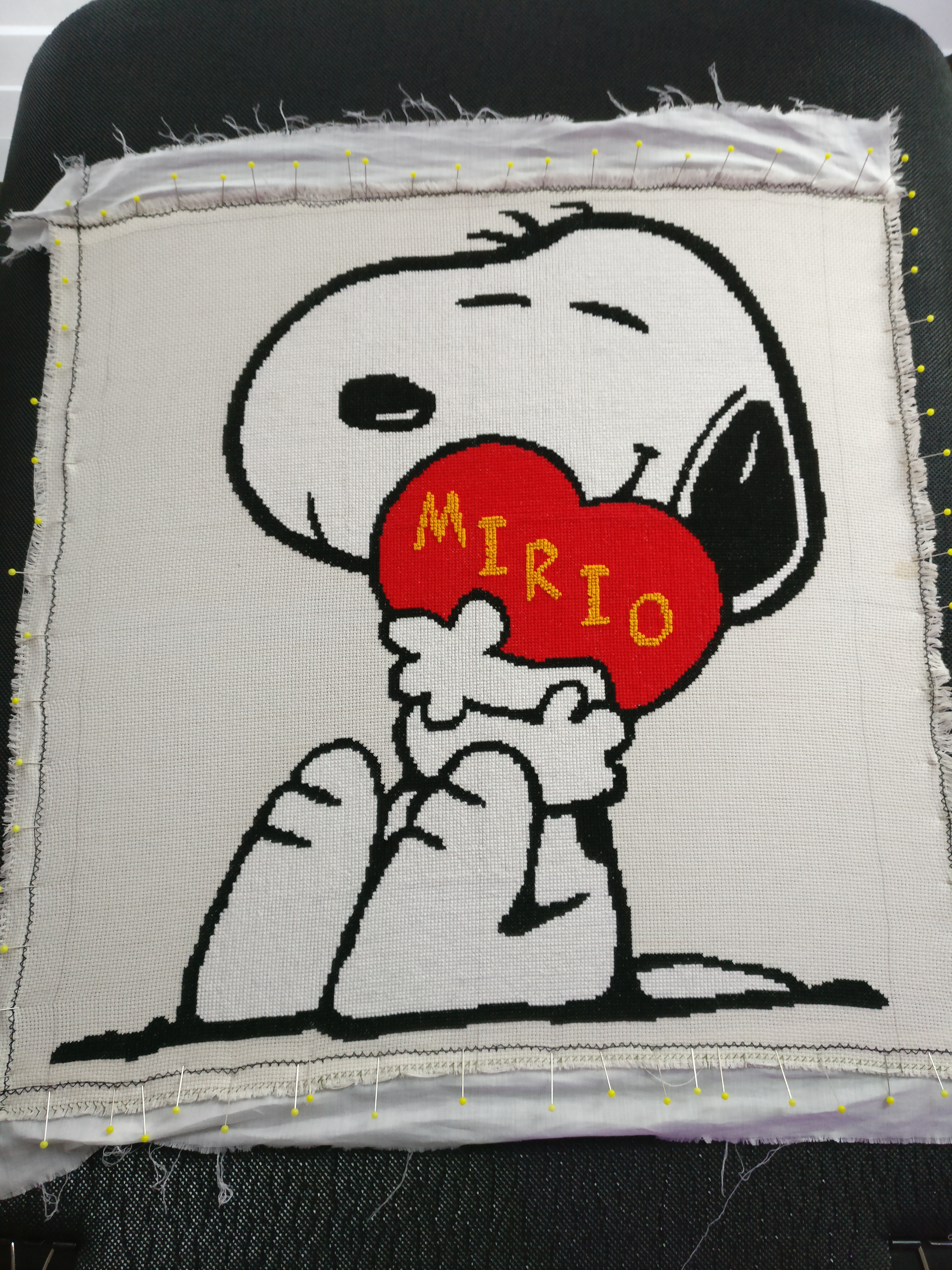 I am currently working on a wedding pillow for my sister. The image is a big (50cm x 50cm) Snoopy hugging a hearth; you can find the pattern here: viewtopic.php?f=5&t=15474