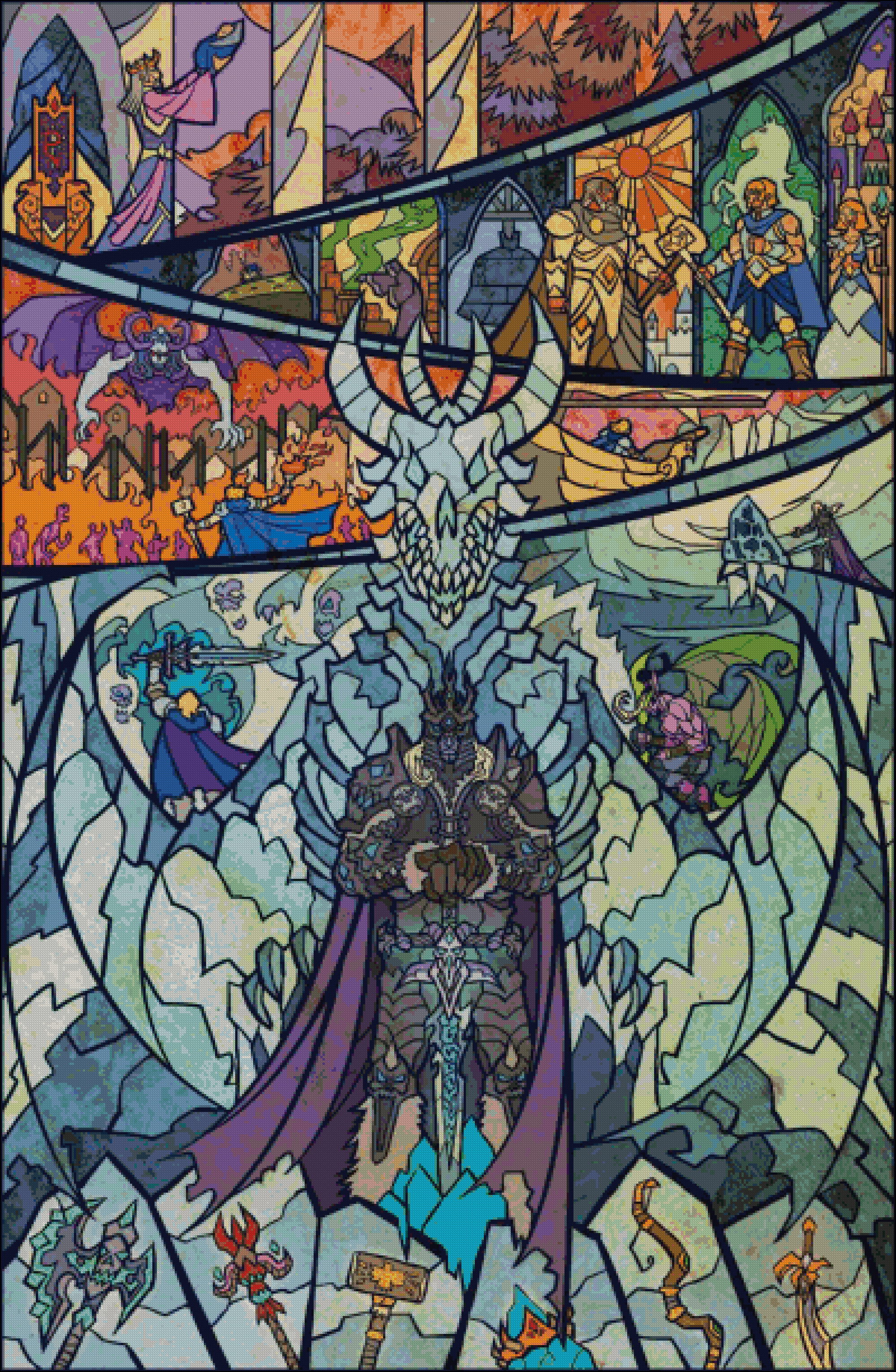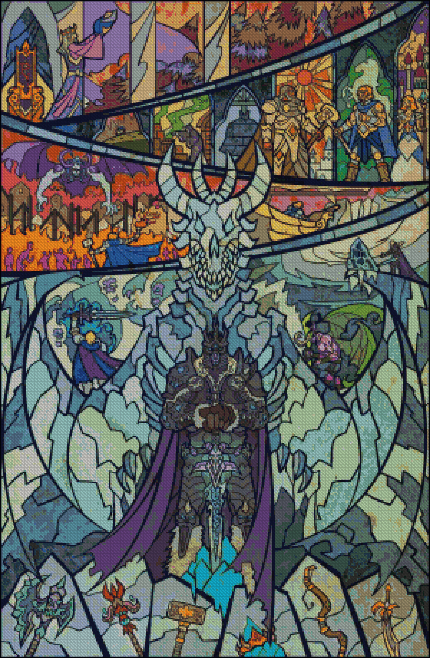 I'm rather new to stitching and I am a big fan of WoW. I want to stitch this as well as two other with Illidan & Sylvanas on it. but it is a large project and i'm used to work with pdf and color guides. Do you think you have that kind of pattern for 300x459? Though the other is better on detail, i think i'm rather apprentice to go with that.