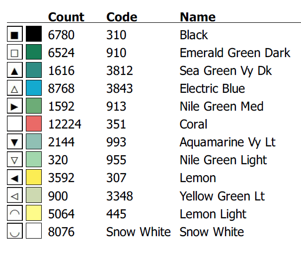 Thank you so much! I was trying to mention the color legend like shapes and their corresponding dmc floss number. :swoon: